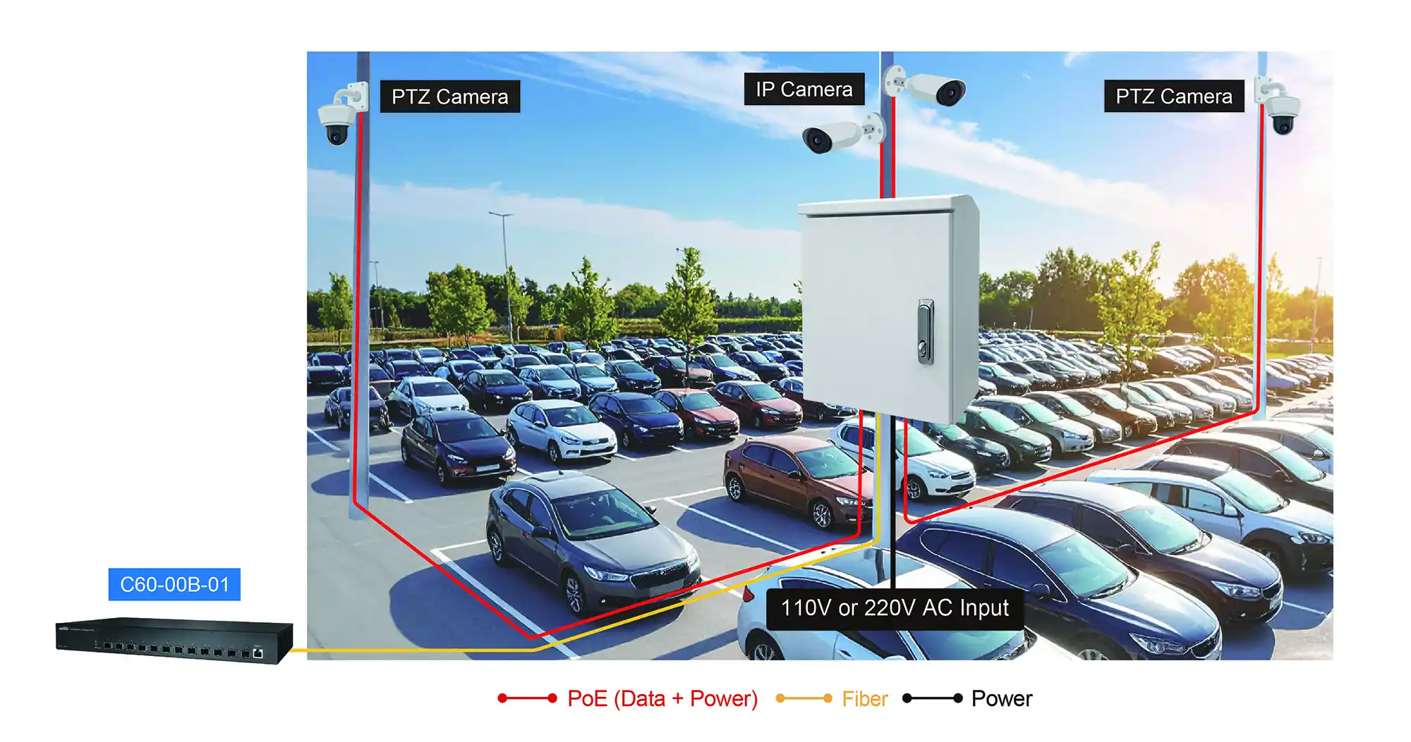 Le telecamere IP, gli speaker PoE e gli IR illuminator dislocati su pali, lungo perimetri o in aree industriali condividono una vulnerabilità comune: dipendono da un’alimentazione AC che può venire meno per guasti, manutenzioni programmate o eventi atmosferici. In assenza di ridondanza, l’intero punto di cattura cade. Questo scenario è particolarmente critico in contesti come infrastrutture stradali, parcheggi sorvegliati, siti estrattivi e perimetri di impianti industriali.