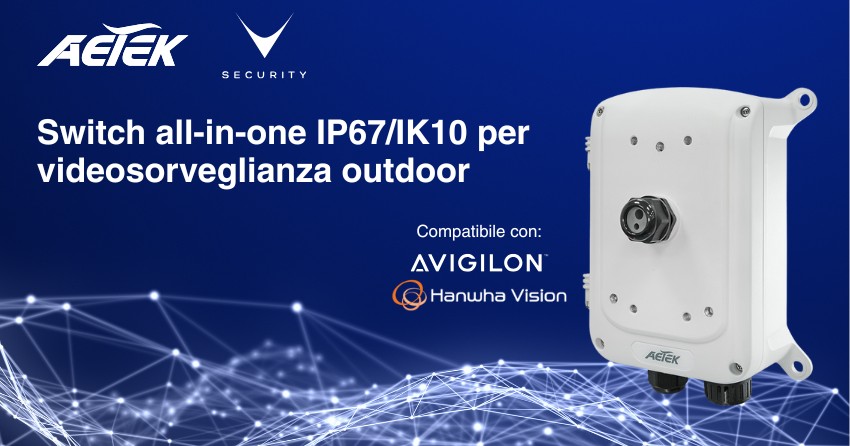 AETEK: nuovo PoE switch outdoor 120W compatibile con camere Avigilon e Hanwha