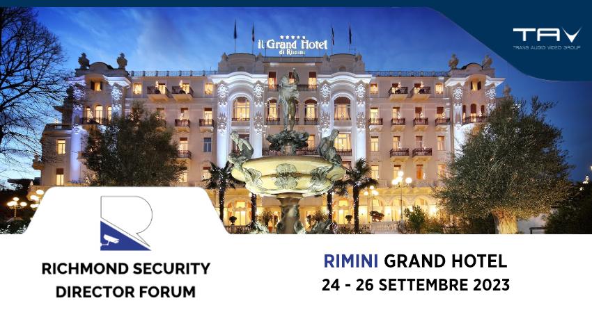 Tra le principali manifestazioni per il settore Security c'è il Richmond Security Director Forum a cui TAV parteciperà dal 24 al 26 settembre a Rimini.