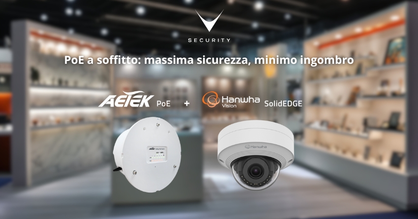 Lo switch PoE In-Ceiling di AETEK e SolidEDGE di Hanwha Vision: integrazione perfetta per installazioni compatte e VMS centralizzato.