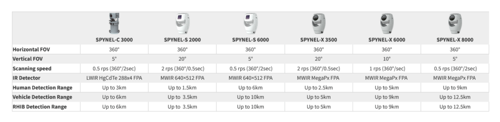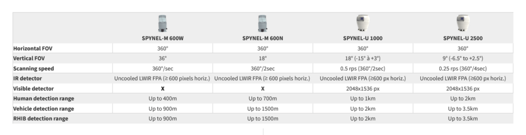 Con questa soluzione chiavi in mano per la sorveglianza di vaste aree, viene rilevato e tracciato un numero illimitato di intrusioni, su un panorama a 360°: nuotatori, piccole imbarcazioni di legno, veicoli, uomini che strisciano, RHIB in mare aperto, UAV, velivoli stealth…Ogni SPYNEL è unico: scopri la nostra gamma di termocamere panoramiche Spynel® e trova il sensore più adatto per le tue applicazioni di difesa e sicurezza.