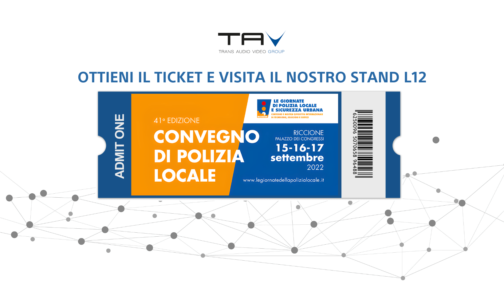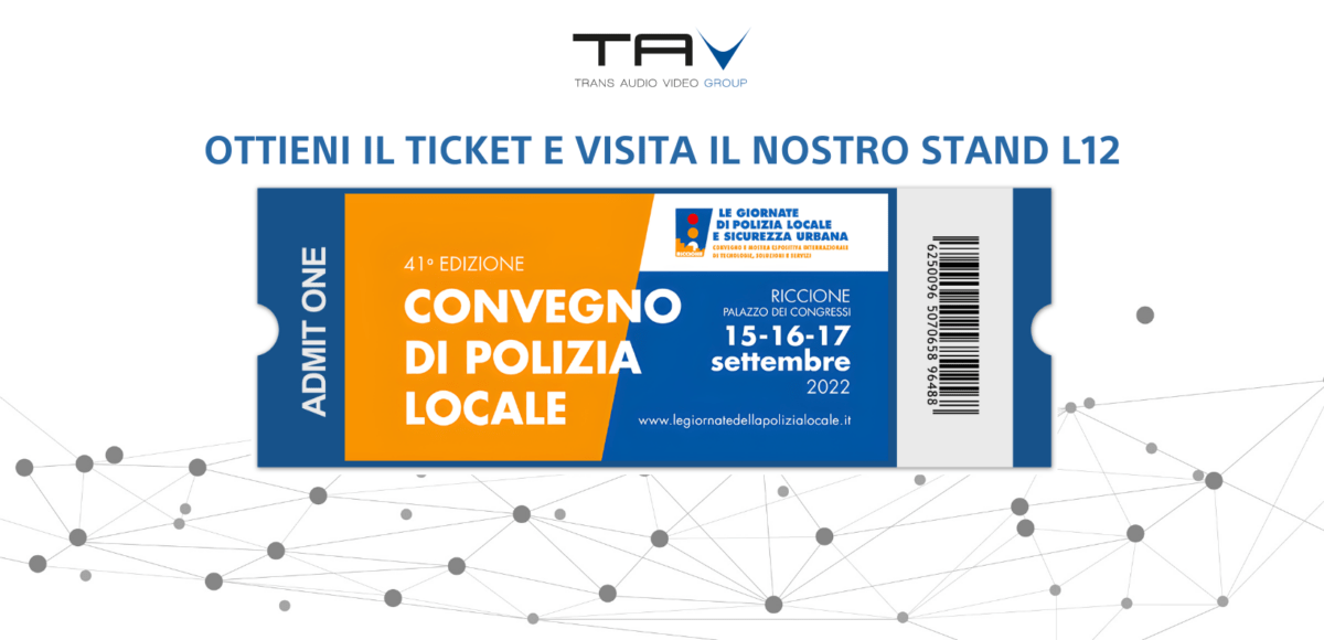 Dal 15 al 17 settembre 2022 Trans Audio Video sarà alla 41ª edizione de Le Giornate di Polizia Locale e Sicurezza Urbana, presso la sede del Palazzo dei Congressi di Riccione.
