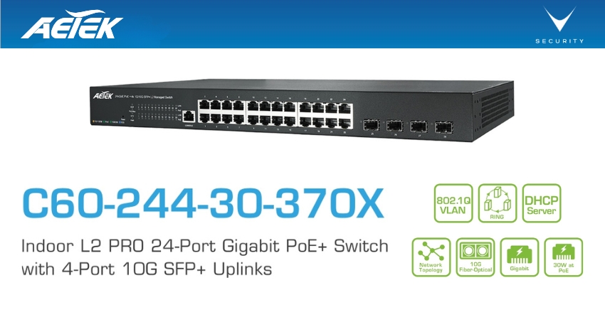 Oltre ai comuni switch PoE unmanaged da 5/8/16/24 porte, AETEK sviluppa un’innovativa linea di switch managed L2 Smart e L2 + con Device Management Software (DMS). Questo programma DMS può semplificare notevolmente l’installazione e la gestione attraverso la GUI, rendendo gli switch PoE per controllare facilmente le telecamere IP conformi a ONVIF-S. Inoltre, la gamma di switch PoE IP67 fino a 8 Porte 10/100/1000Mbps (PoE e 60W UPoE da 30 W) con protezione da sovratensione sono le opzioni eccezionali per i progetti in ambienti estremi.